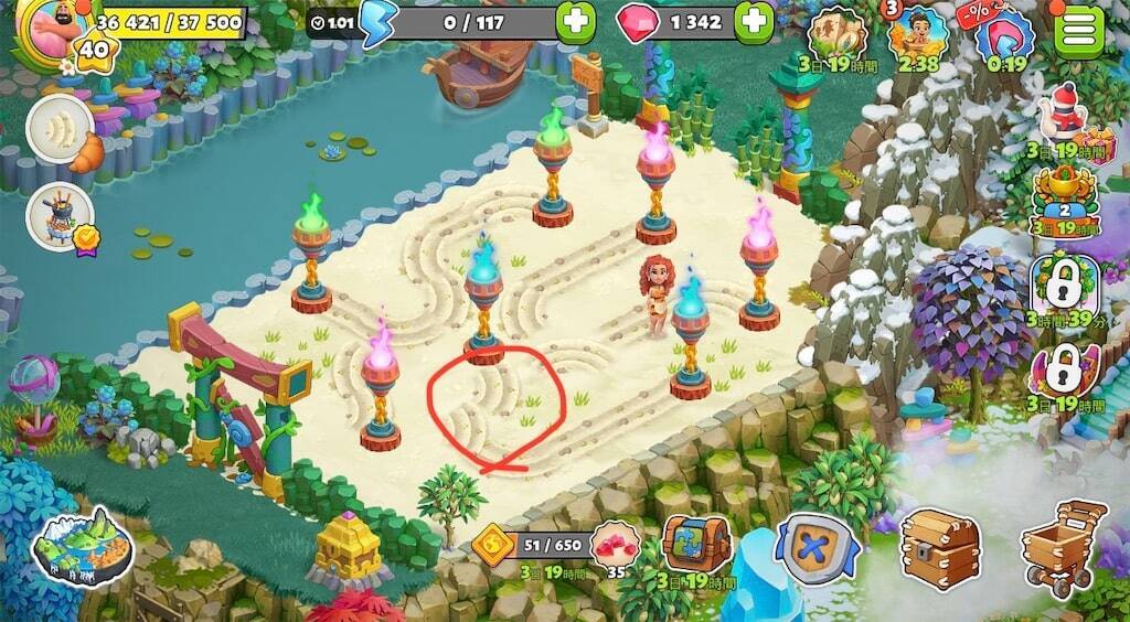 2023-04-27 ファミリーアイランド 味わい島の「たいまつをつなげよう」って何? ゲーム ゲーム-ファミリーアイランド ※当サイトにはプロモーションが含まれています。 ※モバイル版での検索はボトムメニューをご利用ください。 ピンクの袋の最新情報はこちら。 味わい島の「たいまつをつなげよう」というクエストがちょっと分かりにくかったのでアップしておきます。 画像は緑のたいまつを繋げた後の青いたいまつを繋げるクエストです。 砂の模様?のおかしいところ(赤で丸したところ)をタップするとアップグレードのウィンドウが出ます。 緑は草5で青は石5、ピンクは枝5でした。 要求自体は簡単ですね。 味わい島のピンクの袋はこちら。 piro-yurukaji.hatenablog.com
